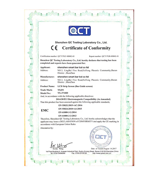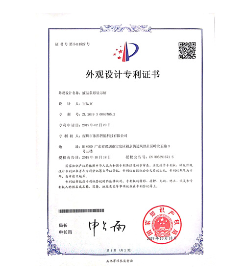液晶条形显示屏专利证书
