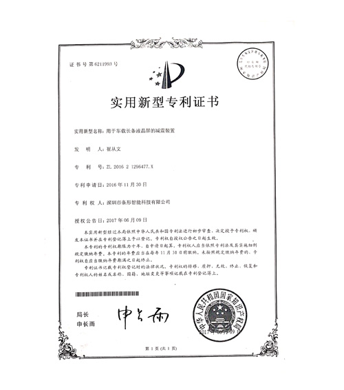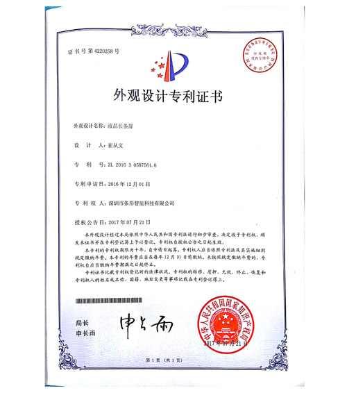 液晶长条屏专利证书